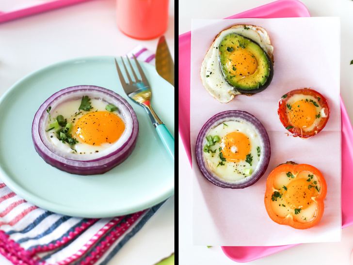 Лайфхак для перфекціоністів: якщо хочете, щоб глазунья мала ідеальну форму, розбийте яйце в цибулеве колечко. А щоб здивувати дитину сніданком, виконайте ті ж маніпуляції з колечком болгарського перцю. Також можна використовувати томат або авокадо.