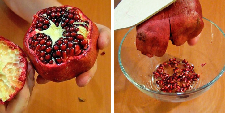 Виявляється, відкрити гранат набагато простіше, ніж ми думали: досить зробити надрізи в правильних місцях, як показано в цьому відео, і трохи постукати по фрукту.