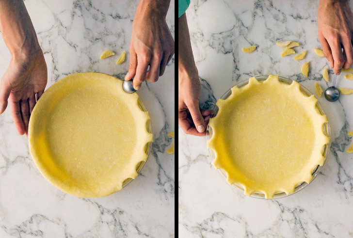 Дати пирогу красиву форму простіше, ніж здається, а кошти для цього вже є у вас на кухні. Можна використовувати ложку, як на фото вище, або дати волю фантазії і поекспериментувати.