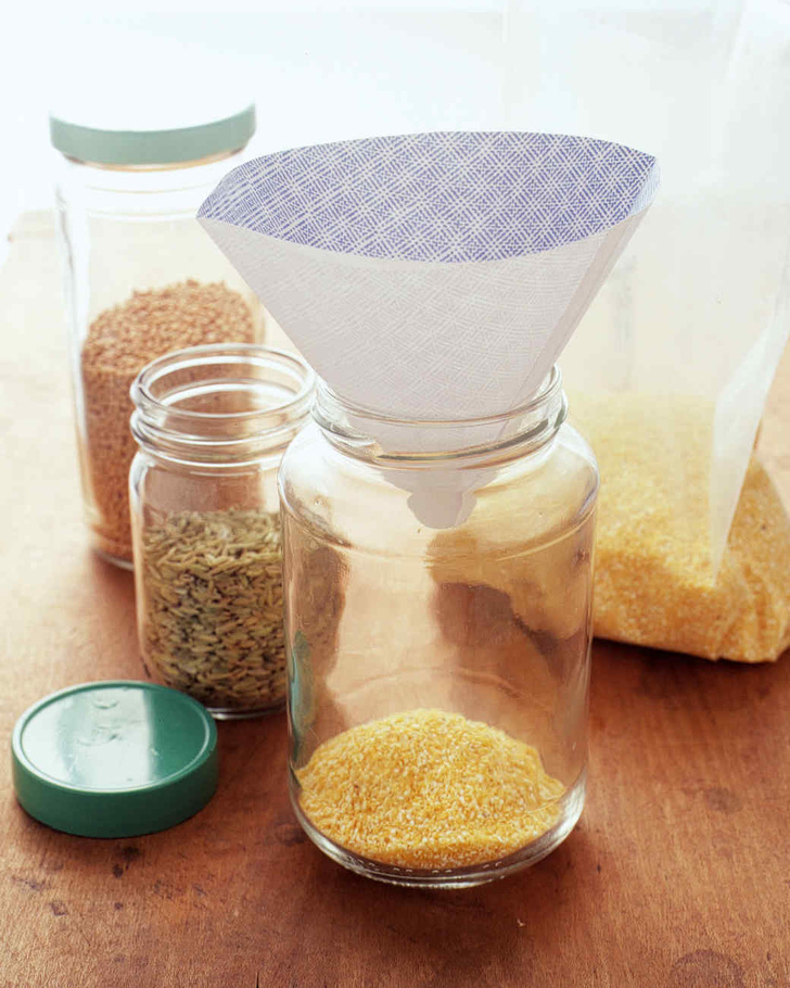 Під рукою немає маленької воронки, а перемістити сіль, крупу або інший сипкий продукт потрібно терміново? Можна використати конверт, розрізаний навпіл. Підходить тільки для сухих продуктів.