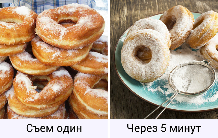Такі улюблені з дитинства смажені пончики можуть виявитися потенційно небезпечними, оскільки з'єднання цукрів і жирів підвищує інтенсивність накопичення внутрішньом'язового жиру. А це в свою чергу призводить до зниження здатності організму реагувати на інсулін, що є найпоширенішою причиною діабету 2-го типу. Крім того, таке поєднання посилює бажання з'їсти більше, ніж ви збиралися.