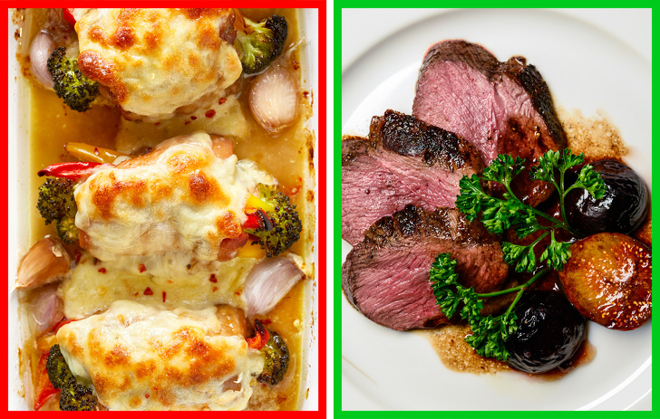 Навіть якщо ви не маєте проблем із зайвою вагою, велика кількість смажених або запечених страв може призвести до розвитку таких хвороб, як діабет, хвороби серця, ниркова недостатність, хвороба Альцгеймера, і навіть стати причиною передчасного старіння. Тому намагайтеся уникати поєднання наступних продуктів в одному прийомі їжі: м'ясо (особливо червоне), деякі сири (брі, альметте, філадельфія, маскарпоне), яєчня, олія, маргарин, майонез, масла і горіхи.