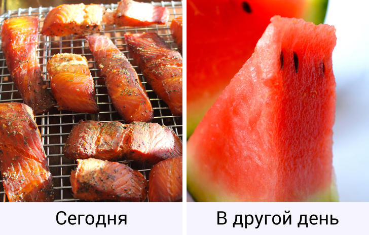Звичайно, ніхто не стане їсти кавун вприкуску з солоним огірком, однак на природі часом, особливо влітку, починаєш змішувати все підряд: копчену рибку, шашлик і, так, кавун. Тому варто пам'ятати, що солоні вкусняшки затримують воду в організмі, якої в кавуні дуже багато. А значить, на ранок є ризик не впізнати себе в дзеркалі з-за набряку обличчя та інших частин тіла.