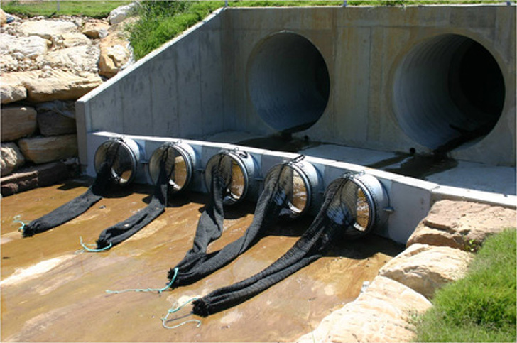 Вся система фільтрації — це, по суті, просто мережу, закріплена на виході дренажної труби. Вона ловить всі великі тверді частинки і утримує їх всередині, тим самим захищаючи воду від забруднення.