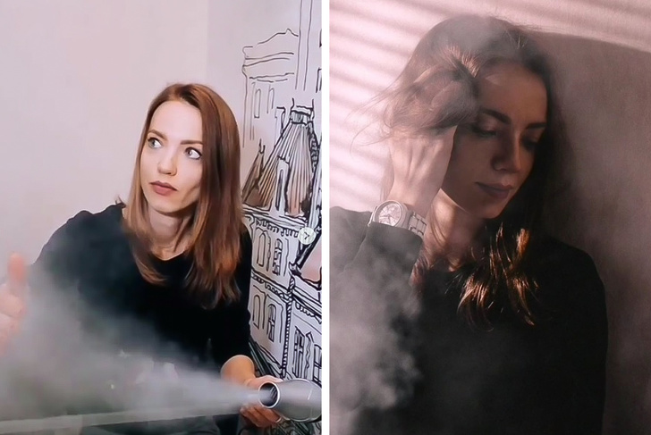 15. Рецепт дим-машини з фена: прибрати захисну решітку нагрівача і вставити пружину вату, змочену гліцерином
