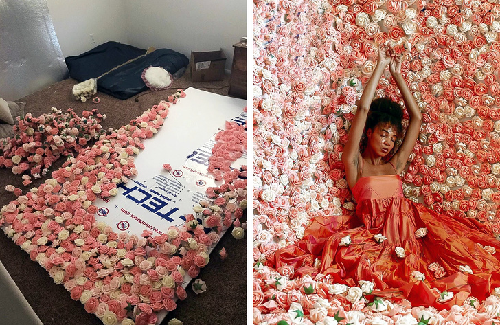 1. Пінопласт, штучні троянди і кілька годин кропіткої праці — квіткова фотозона готова
