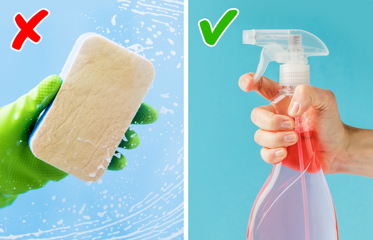 Можна заощадити купу часу, якщо використовувати спрей для очищення поверхонь, замість того щоб просто терти забруднену ділянку. Просто розпиліть засіб на всі поверхні, які бачите, зліва направо. Потім зайдіть в наступну кімнату і виконайте те ж саме, нічого не витираючи.