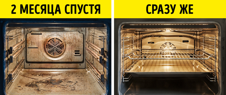Прилади і техніку важливо чистити відразу після застосування, а не 2 години і вже точно не перед тим, як безпосередньо їх використовувати, інакше шкідливі хімікати потраплять у вашу їжу. Робота таких приладів, як тостер, мікрохвильова піч і, пов'язана з нагріванням, і бризки від їжі дуже легко потрапляють на їх поверхню. Якщо ви дали їм повністю охолонути, подальша їх чистка буде справжнім випробуванням. До того ж не пошкодити при цьому металеву поверхню приладу практично неможливо.