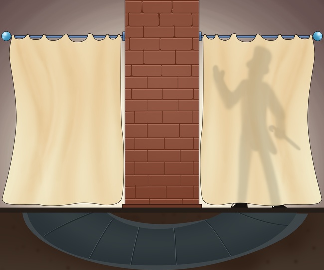 Це виглядає як справжня магія, але трюк насправді дуже простий. Під стіною є спеціальний V-подібний тунель. Стіна на сцені дійсно справжня, а от пол — ні. Ілюзіоністу потрібна лише секунда, щоб переміститися по тунелю з одного боку стіни на іншу.