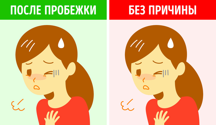 Якщо дихання збивається навіть від невеликих навантажень або занадто довго не відновлюється, зверніться до лікаря. Задишка без причини — поширений симптом серцевих та легеневих захворювань.