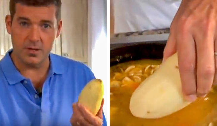 - Суп. Реанимируйте його, додавши 2-3 очищені сирі картоплини, які потрібно буде вийняти через 15 хвилин.