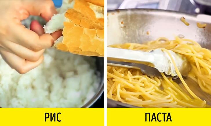 - Якщо рис розварився і в ньому багато зайвої води, спробуйте покласти в каструлю м'якуш хліба, закрити кришкою і потримати кілька хвилин. Хліб вбере вологу.