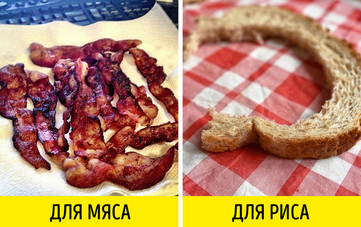 - Пригорілі м'ясні і рибні страви, а також соуси позбавить від небажаного запаху шматочок бекону: покладіть його зверху на 5-10 хвилин, потім приберіть.