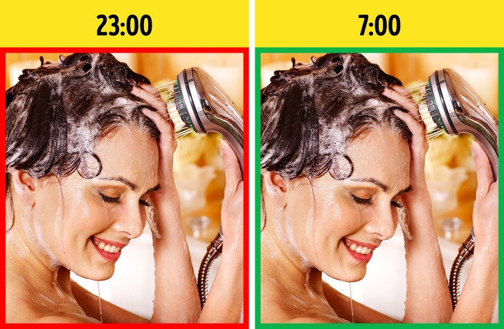 Себум найбільш активно виробляється в нічні години. Тому спробуйте мити голову вранці або до обіду. Нехитра зміна режиму допоможе довше зберегти волосся свіжими і чистими. А настрій — піднесений.