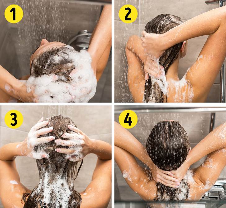 Багато хто з нас звикли наносити шампунь щедрою рукою, забуваючи, що нинішні засоби найчастіше чудово піняться. Шампунь розподіляється нерівномірно, тому що ми наносимо його прямо на волосся. Краще спершу спінити його і в такому стані наносити на шкіру голови і волосся. За фактом довгим волоссям досить 2 ч. л. шампуня, а для коротких зачісок вистачить і декількох крапель.