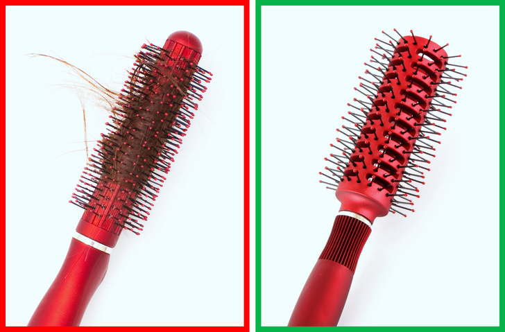 На гребінці накопичуються бруд, залишки лаку, мусу та інших засобів для укладання, частинки пилу. Не у самих охайних — ще й волосся. Зрозуміло, при черговому розчісуванні весь цей букет виявляється на вашій шевелюрі. Тому візьміть за правило очищати гребінець і влаштовувати їй водні процедури як мінімум раз в тиждень.