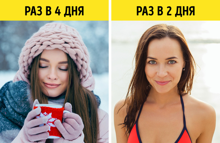 Живете в сухому і більш прохолодному місці? Оптимальний інтервал між миттям голови — від 2 до 4 днів в залежності від типу волосся. Це ж відноситься і до сезону: взимку волосся брудняться рідше, а влітку — частіше.