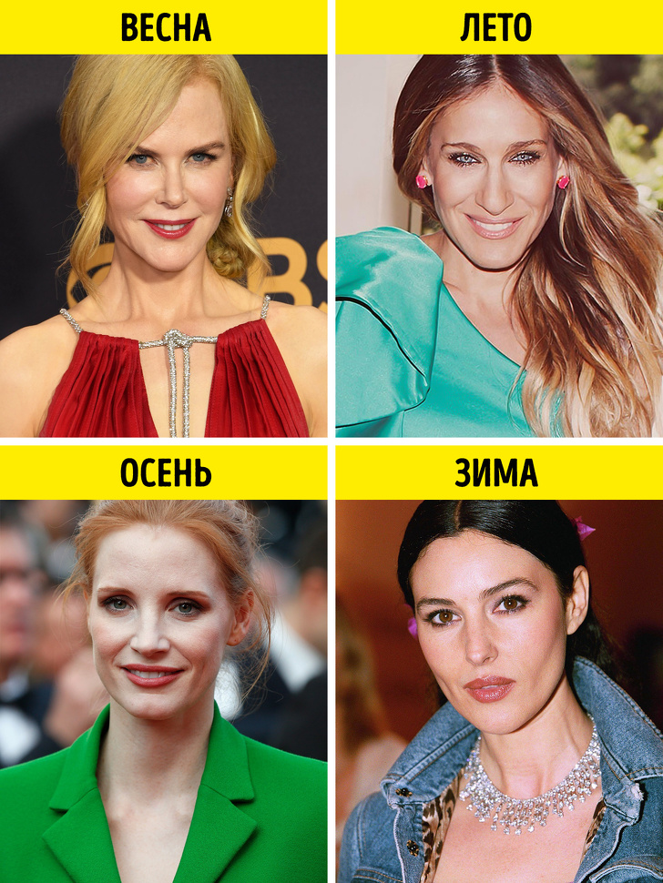 Серед стилістів і дизайнерів користується популярністю сезонний метод аналізу зовнішності, згідно з якою люди діляться на 4 кольоротипи: 2 теплих (весна і осінь) і 2 холодних (літо і зима). Кожному з них притаманна своя індивідуальна палітра відповідних відтінків. Детально вивчити теорію цветотипов і зрозуміти, до якого з них ставитеся саме ви, можна тут, або ж ви можете звернутися до стиліста.