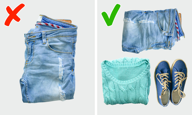 Одні і ті ж джинси можуть по-різному виглядати в різних комплектах: наприклад, відмінно підходити до майці, але зовсім не поєднуватися зі светром. Тому, відправляючись в примірювальну в магазині, візьміть з собою приблизно такі ж речі, якими будете їх носити.
