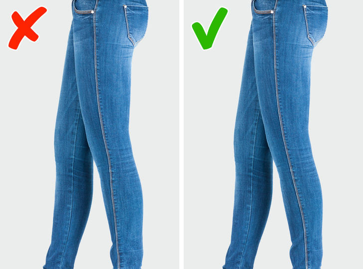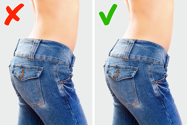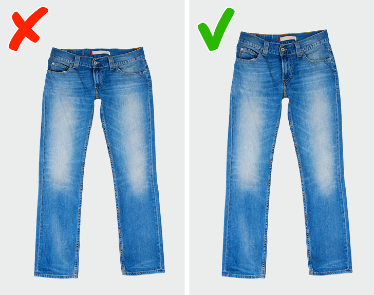 Буває так, що джинси відмінно сидять скрізь, крім лінії пояса, тобто ви можете легко просунути кілька пальців між поясом і спиною. Не варто сподіватися, що ремінь позбавить вас від цієї проблеми: через нього утворюється складка і джинси будуть погано сидіти. Вихід тут один — просто пошукайте іншу модель.