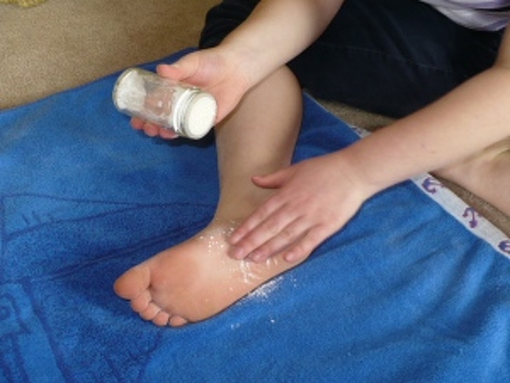- Після душу нанесіть сухі ноги содою або крохмалем між пальцями: це допоможе уникнути надмірного потовиділення.