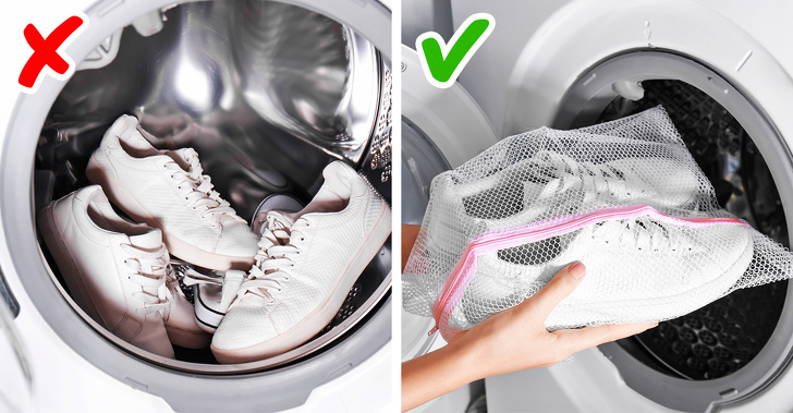 Попереджаємо, що ручна чистка в багатьох планах безпечніше: з нею немає ризику, що вода розклеять підошву, а сушка зіпсує її амортизаційні якості. Але якщо у вас немає часу на хімчистки для взуття або забруднення вимагає кардинальних заходів, то без пральної машинки не обійтися.