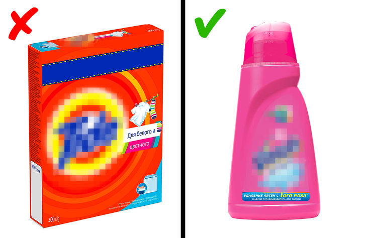 Порошок важко змити, тому він може залишити плями. Краще використовувати рідкий засіб. Якщо кросівки білі, то можна додати трохи відбілювача начебто Vanish.