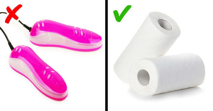 - Набити папером, щоб уникнути деформації. Можна використовувати паперові рушники, серветки, бавовняну тканину, рушники, але не газети, так як друкарська фарба може перейти на вологе взуття.