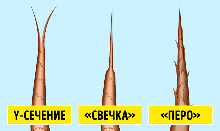 - Y-перетин — найвідоміший варіант пошкодження. В даному випадку зовсім не обов'язково вдаватися до якнайшвидшої стрижці. Ситуацію цілком можна врятувати посиленим харчуванням волосся з допомогою вітамінізованих масел і зволожуючих масок.