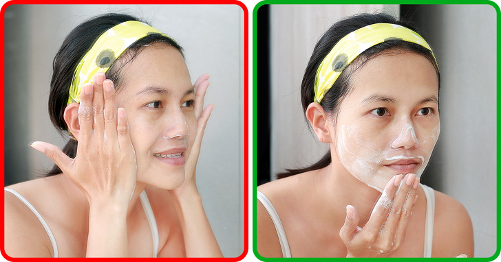 - Багато дерматологи радять вмиватися руками, щоб менше травмувати шкіру, адже мікротріщини і надмірне тертя можуть призвести до передчасної появи зморшок. Меринда Джой, що працює з багатьма голлівудськими зірками, рекомендує робити це так: круговими масажними рухами нанесіть засіб для вмивання на зволожену шкіру, не сильно давлячи на обличчя. Не забувайте, що наша шкіра покрита тоненькими волосками, і кругові рухи якраз допоможуть засобу проникнути в пори під ними.