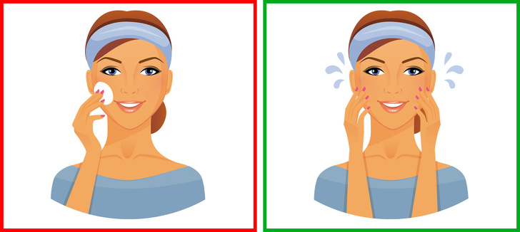 - Ідеальний варіант для вмивання — вода кімнатної температури. Занадто холодна вода змусить ваші пори звужуватися, а гаряча вода з-під крана сушить шкіру.
