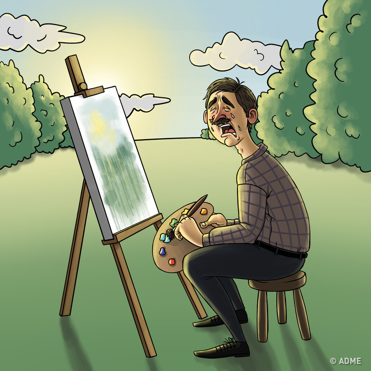 Художник вчора написав пейзаж, але пішов потужний злива розмила всі кольори. Було прикро, він заплакав.