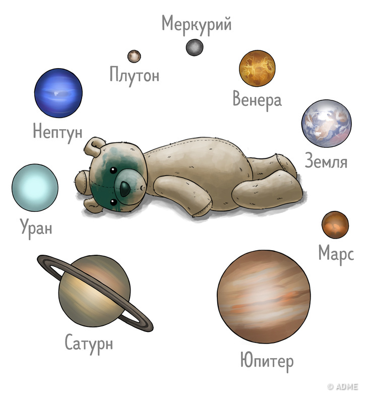 Ще в школі, щоб запам'ятати порядок розташування планет (Плутон тоді ще вважали планетою), я придумала так звану лічилку за принципом всім відомої «Кожен мисливець бажає знати, де сидить фазан». Виглядала вона так: