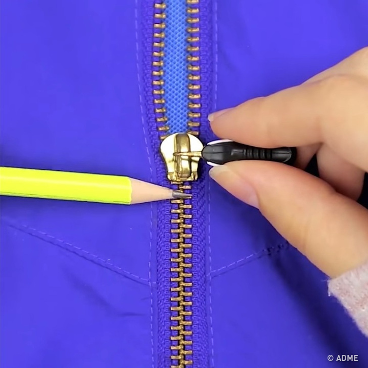 Якщо блискавка на одязі несподівано застрягла, можна використовувати звичайний олівець. Потріть обидві сторони блискавки грифелем і акуратно застебніть її. Крейда теж добре справляється з цим завданням.