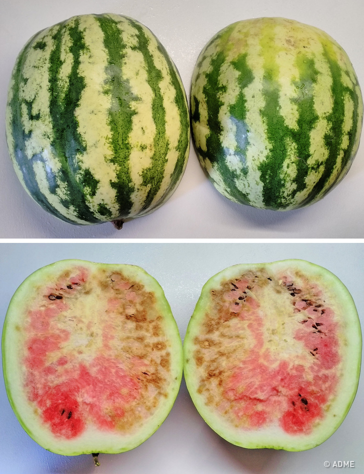 Багато користувачів інтернету пишуть, що ось такі поглиблення - сліди від голок баштанників, які обколюють кавуни нітратами. Якщо поглиблення некрізні, боятися їх не варто: це сліди, залишені личинками-дротяниками. Вони на якість і смак ягоди не впливають.