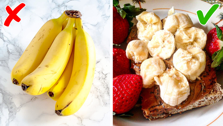 Харчові волокна і білок, якими багата горіхова паста, успішно нейтралізують цукор, який міститься в бананах, позбавляючи вас від небажаних для дієти наслідків у вигляді зайвих кілограмів. Звучить неймовірно, але оскільки мигдаль уповільнює швидкість, з якою ваше тіло поглинає цукор, рівень глюкози залишається більш стабільним, а це, в свою чергу, дарує відчуття насичення на більш тривалий час і дозволяє їсти менше без душевних терзань і голодні непритомності. Так що сміливо беріть це поєднання на озброєння, коли вам нестерпно захочеться з'їсти що-небудь солоденьке і поживне.