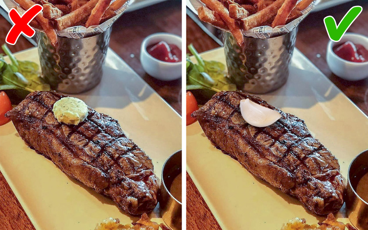 Відмовляєтеся від стейків, будучи на дієті? Дуже навіть дарма. Тільки вибирати краще м'ясо трав'яного, а не зернового відгодівлі, так як воно містить менше жирових вкраплень, але дає насолоджуватися натуральним смаком яловичини. Більш того, стейки з м'яса трав'яного відгодівлі багаті лейцином — амінокислотою, яка допомагає нарощувати м'язову масу і спалювати при цьому зайвий жир.