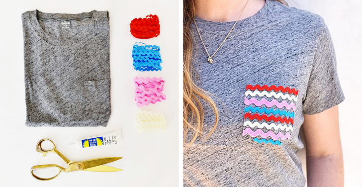 Пришивши стрічки яскравих кольорів на футболку, ви перетворіть звичайну річ з мас-маркету в щось унікальне.