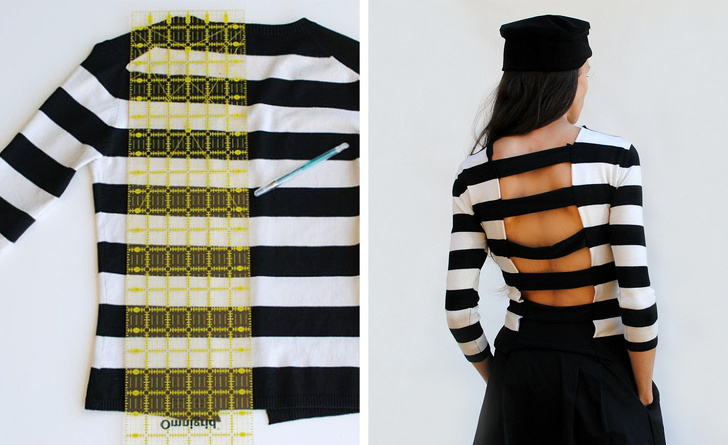 Додати пікантності вашій светру дуже просто: потрібно просто вирізати частину спинки. Як це зробити, можна дізнатися тут.