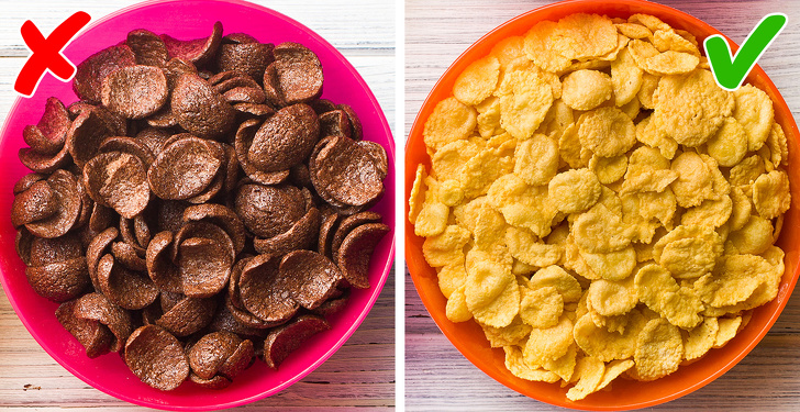 Якщо ви вже схопилися за які-небудь шоколадні, медові та інші подібні пластівці, то поставте їх на місце. Кількість цукру, що міститься в них, звісно, йде врозріз з корисним перекусом. Мова йде про пластівцях з високим вмістом клітковини, цільнозернових, кукурудзяних, рисових, які також об'єднує низький вміст цукру. У парі із знежиреним молоком ви, знову ж, отримаєте необхідну дозу триптофану, наситите організм і дасте йому зрозуміти, що пора лягати спати.