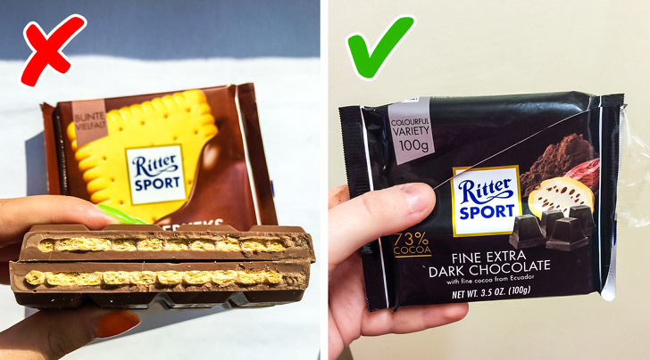Так, шоколад також можна вважати безпечним перекусом перед сном. Важливо тільки пам'ятати, що мова йде не про молочному шоколаді, ще й з горіхами, а про гіркому шоколаді без добавок, що складається як мінімум на 72 % з натурального какао. Завдяки йому ми отримаємо велику кількість антиоксидантів і клітковини, достатня для насичення, і при цьому уникнемо високої дози цукру. І пам'ятаймо: не більше 50 г, можна менше.