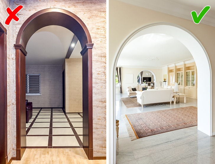 Арка — популярний прийом в декоруванні, вони настільки поширені, що їх можна зустріти навіть у крихітних квартирах. Проте не всі однаково красиві арки. Дизайнери попереджають: арка доречна в приміщенні, коли її форма перегукується з обрисами вікон або, навпаки, пом'якшує гострі кути в архітектурі будинку.