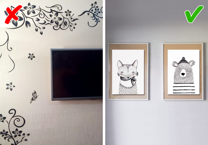 Перекладні картинки, схожі на татуювання з 90-х, потрапили в наш чорний список. І не дарма — в більшості своїй вони виглядають недоречно і не підходять для будинку, де живуть дорослі люди.