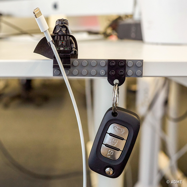 З деталей LEGO можна змайструвати зручний тримач для дрібниць. Закріпіть одну довгу деталь там, де вам зручно, а маленькі детальки прикріпіть до дрібниць, які втрачаєте частіше всього, наприклад до ключів.