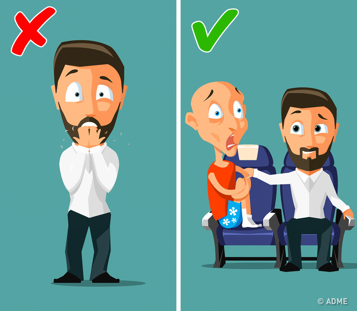 Якщо ви розумієте, що з літаком щось не так, заздалегідь приготуйте шматочок тканини, бажано вологою. Якщо борт загорівся, пересувайтеся акуратно, максимально пригнувшись до підлоги, і дихайте через цю тканину.
