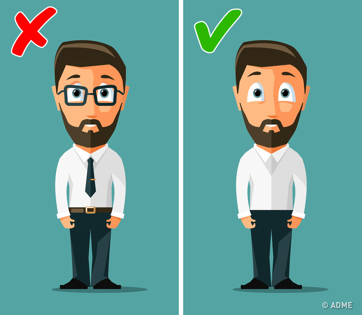 Зніміть ремінь та краватка, роззуйтеся, якщо ви на підборах. У критичній ситуації ці речі можуть заважати: ними легко зачепитися за що-небудь і впасти. Витягніть з кишень все, навіть дрібниця: при ударі або падінні при жорсткій посадці вона може нанести серйозні травми. Візьміть в руки тільки найнеобхідніше, наприклад окуляри, якщо ви зовсім не можете без них обійтися. Якщо ж ви нехай не дуже добре, але все ж бачите без окулярів, краще відкласти їх.