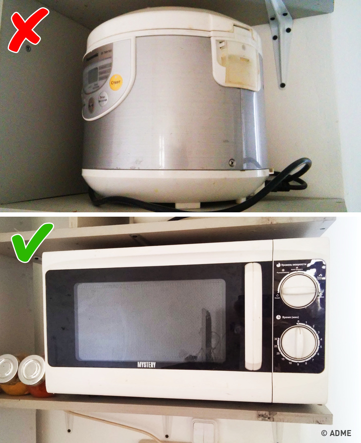 Від перепаду температур всередині техніки може утворитися конденсат, з-за якого вона швидко вийде з ладу. Особливо піддається впливу мікрохвильовка: конденсат зруйнує емалеве покриття і вона заіржавіє вже через рік.