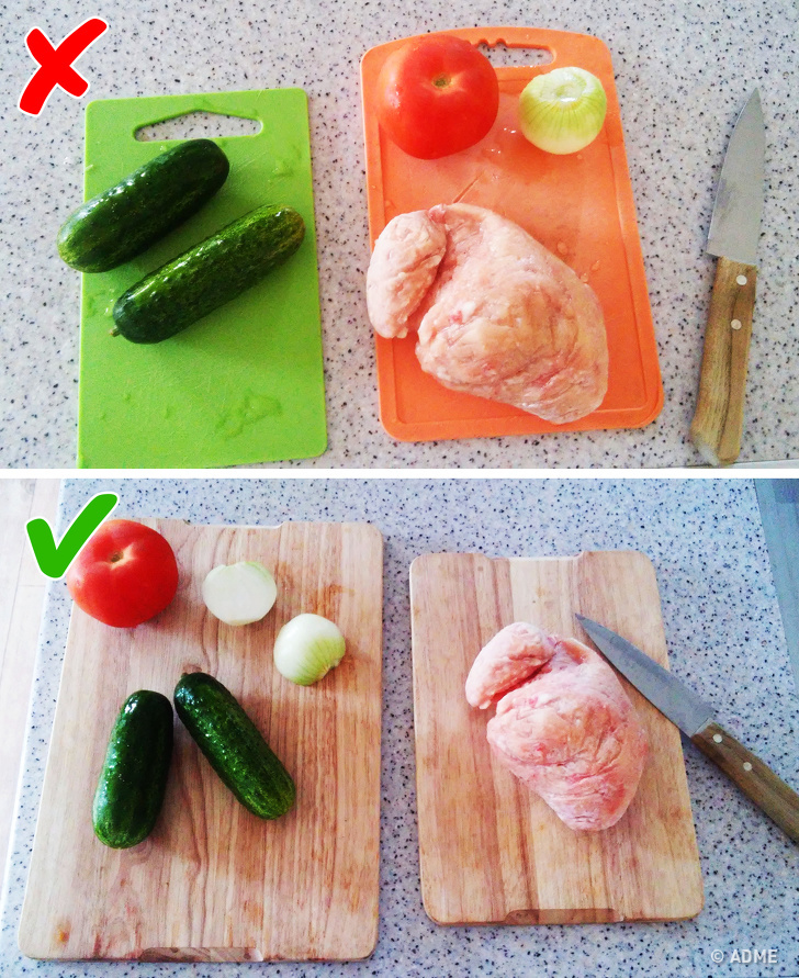 Краще, коли дошки мають «спеціалізацію»: для м'яса одна, для овочів інша, для риби третя. При цьому варто пам'ятати, що пластикові дошки вважаються набагато більш небезпечними з точки зору швидкості розмноження в них патогенних бактерій, ніж дерев'яні. Подряпини і борозенки на пластикових дошках з часом стають набагато глибше, ніж на дерев'яній поверхні, відповідно, очищатися така дошка з кожним разом буде все гірше і гірше.