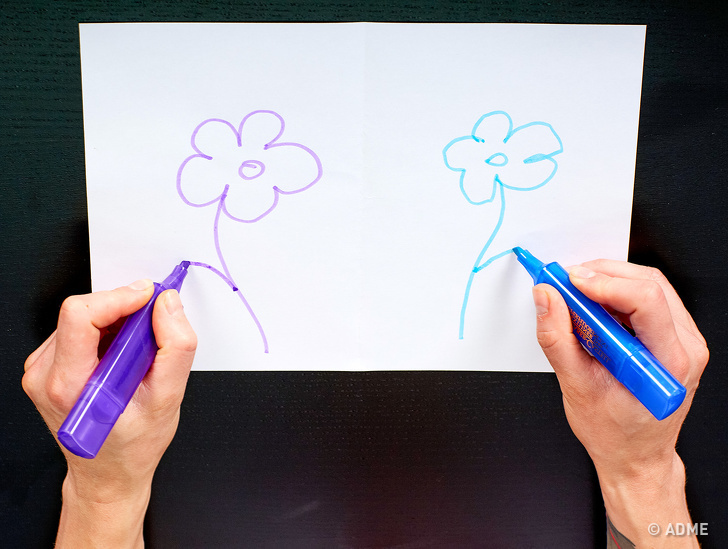Для виконання вправи потрібно аркуш паперу і два олівці або фломастери. Обидві руки одночасно повинні малювати симетричні малюнки. Зображення будь-які: цифри, символи, фігури, букви. Продовжуйте, поки заняття приносить задоволення.Це вправа синхронізує роботу півкуль мозку, збільшуючи ефективність його роботи в цілому.