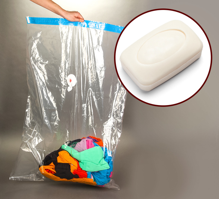 Коли ви довго подорожуєте, цілком природно, що у вашому валізі накопичується ношений і нестираная одяг. Щоб уникнути появи неприємного запаху, покладіть в пакет з такими речами шматок мила, який знайдете в номері готелю.